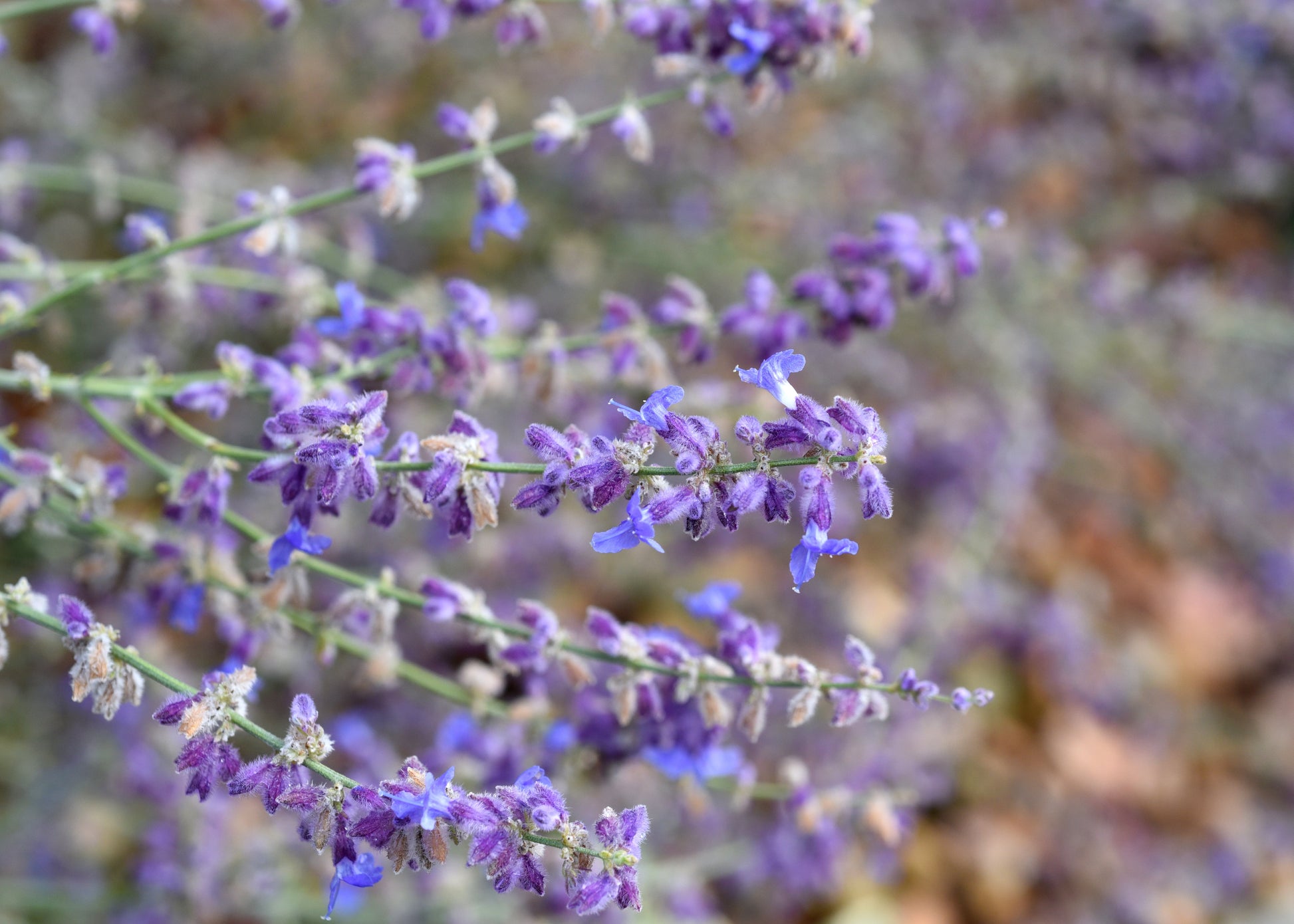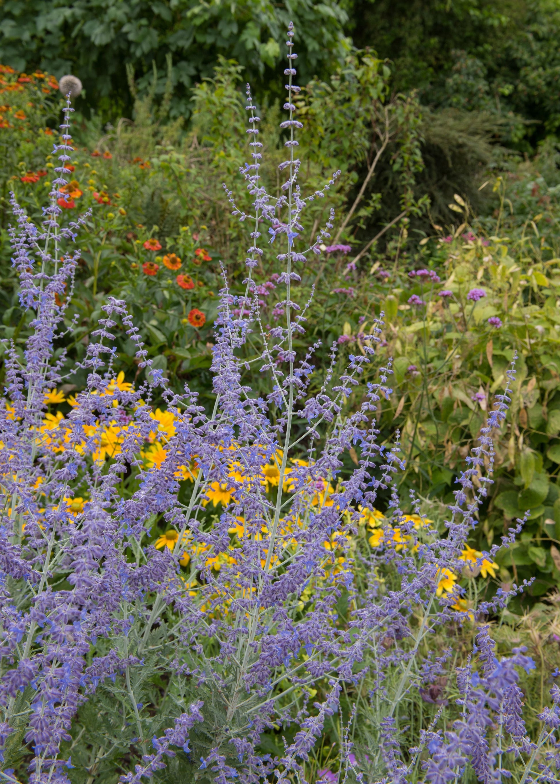 - From late July until September, upright spikes of tiny violet-blue flowers are produced in abundance, creating an airy haze of colour. Regular deadheading will prolong flowering time.